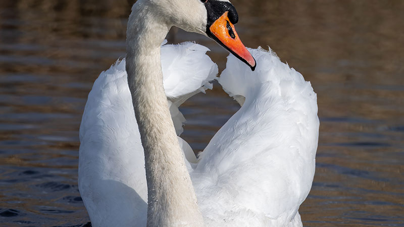 - Mute swans are known for their graceful “S” shaped necks and striking white plumage.